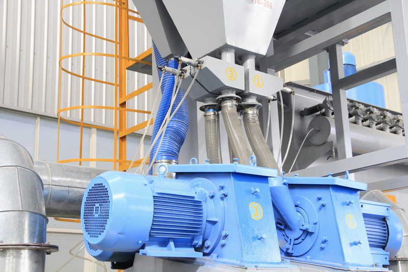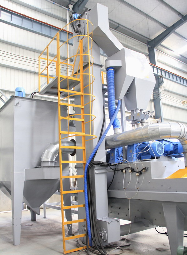 ★采用進口技術生產的拋丸器,對石材的毛化效果好、效率高;彈丸和石粉分離凈化系統好,選用三級滾筒篩分離器;除塵器選用脈沖反吹布袋除塵器專