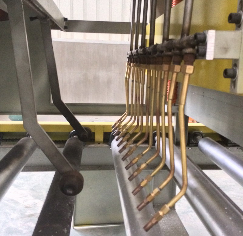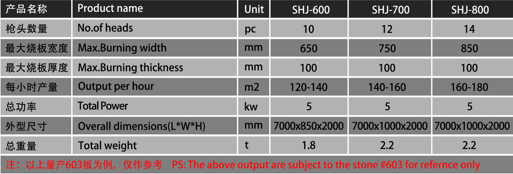 全自動系列燒花機是主要針對花崗巖板材表面的毛化處理,該系列設備的問世,徹底改變的以往人工燒板效率低、成本高、表面紋理不均等缺陷,使石材表面毛化處理實現(xiàn)高產量、高品質、低成本新時代,是石材毛化處理的理想設備。 該類設備優(yōu)點在于: ●燒板槍頭可以根據板材變形量自動調節(jié)其與板面距離,以達到理想地燒板效果 ●加工成本低,耗氣量小,氣體用量比人工燒板節(jié)省一二成 ●燃料氣路自動斷氣保護,確保用戶安全操作 ●進板采用無極變速,用戶可根據各種板材特性選擇不同的板材進度 ●全電腦觸摸操作系統(tǒng),操作簡單,實現(xiàn)人機智能對話作業(yè) ●流水線作業(yè),大大提高產量和產品質量 ●設備故障自動檢測報警,幫助用戶輕松解決設備問題 ●槍頭隨板變形量自動升降 ●自動斷氣保護 ●全電腦觸摸操作界面 ●進板無極變速 ●耗氣量較人工燒板節(jié)省二三成 根據石材不同用戶需求,已相繼推出:shj800系列燒板機,深受用戶青睞,產品供不應求,目前 已在山東、河南、湖北、湖南、廣西、遼寧、廣東、福建、吉林、等省份使用